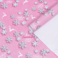Бумага упаковочная глянцевая "Новый год", розовая, 70 х 100 см