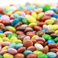 Состав: Молочный шоколад 44% (какао минимум 44%), (сахароза, какао масло, сухое молоко, какао-паста, сухое обезжиренное молоко, эмульгатор лецитин подсолнечника Е322; ароматизатор), сахароза, крахмал рисовый, стабилизатор гуммиарабик, мальтодекстрин (из пшеницы); глазирователь воск карнаубский E903; красители диоксид титана E171, синий блестящий E133, кармин E120, бета каротины: E160а, E160а(iii), E160(iii). Может содержать следы орехов и глютена.