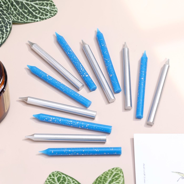 Набор свечей для торта "Спарк", 12 шт, 8 см, синий и серебряный металлик