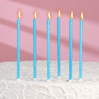 Свечи для торта "Классические" с подставкой, 13 см, 6 шт, голубые