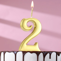 Свеча в торт цифра "2", 5,3 см, золото