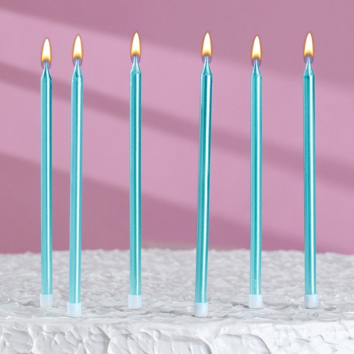 Свечи в торт "Ройс", 6 шт, высокие, 13 см, небесно-голубой металлик