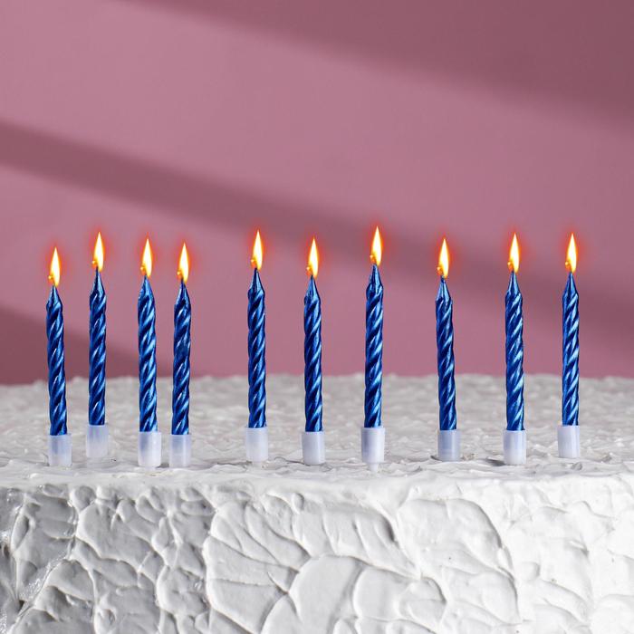 Свечи в торт "Спираль", 10 шт, средние, 5 см, синий металлик