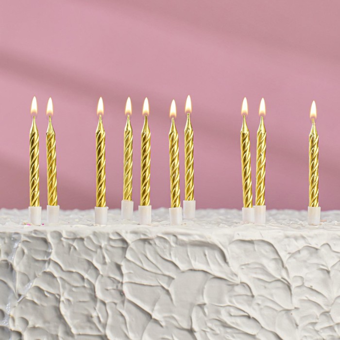 Свечи в торт "Спираль", 10 шт, средние, 5 см, золотой металлик