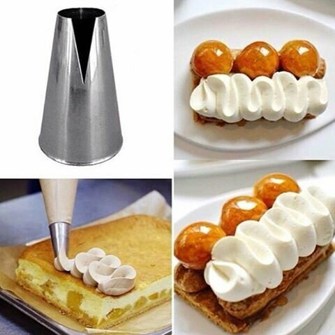 Насадка для крема – простое приспособление, без которого современный кондитер не сможет обойтись. Все насадки для крема снабжены двумя отверстиями, одно из которых большего диаметра. Этой стороной устройство закрепляется в мешке или шприце. Меньшая часть конуса обычно имеет узорчатый внешний вид, придает крему нужную форму. Кремовые украшения получаются благодаря разным размерам форм и диаметрам насадок. Небольшие металлические конусы позволяют выводить на торте или капкейке кремовые цветы, листья, траву, замысловатые узоры или простые идеальные линии. При грамотном использовании насадок можно оригинально украсить торт разнообразными узорами. Размеры : диам.верх 14.0 мм диам. низ 25.0 мм высота 37.5 мм Производитель: Китай